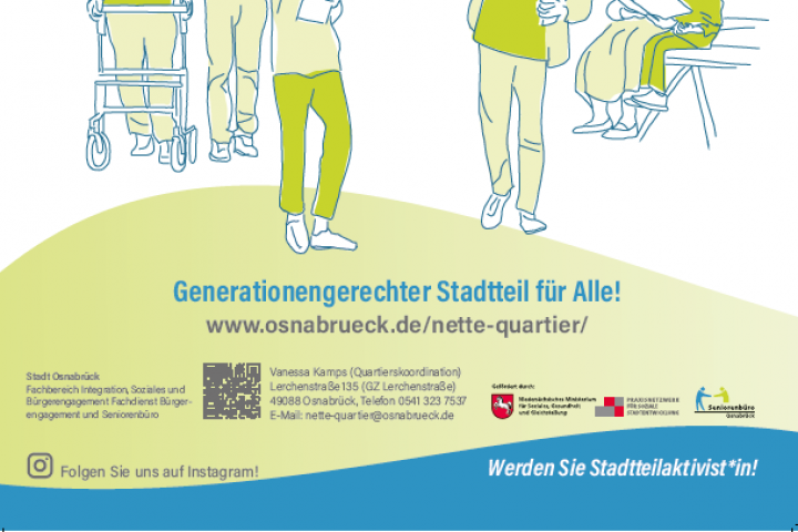 Im Nette-Quartier arbeiten die Fachbereiche „Kinder, Jugend, Familien“ und „Integration, Soziales, Bürgerengagement“ ressortübergreifend zusammen, um perspektivisch ein gesamtstädtisches Konzept der beteiligungsorientierten Quartiersentwicklung zu erarbeiten. Der Ansatz soll als gesamtstädtische Strategie der GWA/QM nutzbar gemacht und im Rahmen der Sozialplanung verstetigt werden. Mit der Projektförderung im Nette-Quartier hat die Stadt Osnabrück einen Pilotprozess zum integrativen Ansatz „Quartier für Alle!“ initiiert.