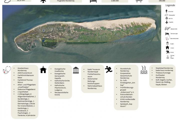 Im Jahr 2019 hat die ostfriesische Insel Norderney 222 Jahre Seebad gefeiert und es ist typisch für die Norderneyer, dass sie 222 Jahre und nicht etwa 225 Jahre gefeiert haben. Die Insel lebt zu fast 100 % vom Tourismus und war insbes. in den letzten zwei Jahrzehnten als Destination sehr erfolgreich. Das zeigen die 3,8 Mio. Übernachtungen, über 590 Tausend Gäste und das bei rund 6.500 Einwohnern. Das Marketing, das mit dem Slogan "Meine Insel" wirbt, ist so erfolgreich, dass es quasi keine Saison mehr gibt. In den Wintermonaten sind mit etwa einem Drittel der Sommerkapazitäten Gäste und Übernachtungen zu verzeichnen. Dieser Erfolg hat aber auch seine Schattenseiten. Das soziale Miteinander der Inselgemeinschaft hat durch die touristische Auslastung auch gelitten. So gibt es z. B. aufgrund der fast ganzjährigen Saison keine Winterruhe mehr, Freiräume für die Insulaner sind kaum noch vorhanden, Wohnraum zu teuer. Zunehmend wurden die kritischen Stimmen der Einwohner lauter, Politik und Verwaltung mussten etwas tun. 2019/2020 wurde ein Lebensraumkonzept gemeinsam mit der Bevölkerung erarbeitet, das die derzeitige Lage und Probleme aufzeigt, aber auch das Potential, was die Inselgemeinschaft tun kann, um die Lebensqualität auf der Insel zu verbessern. Die Norderneyer haben 6 prioritäre Projekte entwickelt. Eines davon ist, dass die Umsetzung der Ziele nur mit den Bürgerinnen und Bürgern erreicht werden kann und diese dabei unterstützt werden müssen. Deshalb soll eine Stelle eingerichtet werden, die sowohl Schnittstelle zwischen Bevölkerung und Verwaltung sowie zur Politik bildet, um den Erfolg aller Maßnahmen, aber eben auch die Bürgerbeteiligung an sich auf der Insel zu verstetigen. Ein Austausch mit dem Projekt "Leben im Meer" der Inseln Juist, Spiekeroog und Wangerooge sowie dem Dachprojekt hat aufgezeigt, dass die Gemeinwesenarbeit die richtige Methode ist, um genau diese Ziele zu erreichen. Zukünftig soll eine Vernetzung zu diesem Projekt den eigenen Prozess unterstützen. Die Implementierung der Gemeinwesenarbeit über den Förderzeitraum hinaus wird angestrebt. Die Corona-Krise hat die Wirtschaft auf der Insel nahezu zum vollständigen Erliegen gebracht und natürlich auch Existenzängste erzeugt. Es ist aber auch deutlich geworden: Die Inselbevölkerung kann ihre Potentiale beleben. Man hilft sich wieder gegenseitig, wie früher, als man in Extremwetterlagen auf sich allein gestellt war. Das gibt positiven Schub und Kraft für die GWA auf der Insel.