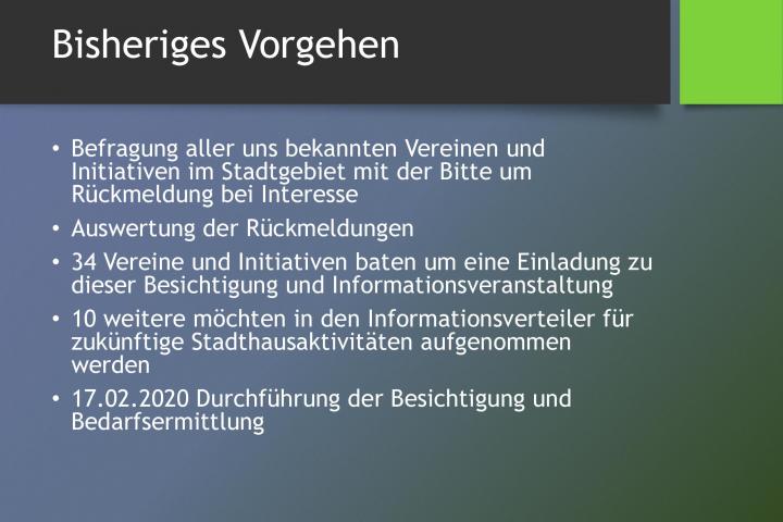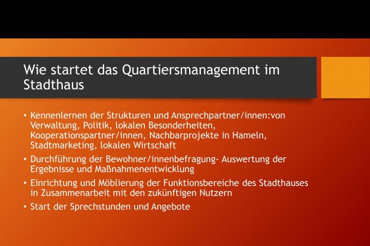 Der Aufbau der GWA ist ein Baustein der Gesamtstrategie HO - Baut um, die Wege aufzeigt, das Grundzentrum, in dem etwa 5.000 Menschen leben, langfristig als Identifikationsort der Gesellschaft und Kristallisationspunkt für das Alltagsleben zu erhalten. Das StadtHaus wurde mit EU-Fördermittel als Schlüsselimmobilie für städtische Daseinsfürsorge und als Standort u.a. für die Gemeinwesenarbeit umgebaut . Mit der Stelle des Quartiersmanager wird das StadtHaus mit Leben und Aktivität im Zusammenwirken mit den städtischen Vereinen, dem Ehrenamt und lokalen Akteuren erfüllt und für Kulturarbeit und Daseinsfürsorge entwickelt. Der Ort bietet Raum für das Beratungsbüro der Gemeinwesenarbeit,die Stadtbücherei, einen Versammlungsraum für das Vereinswesen, und einen Veranstaltungsraum für Kulturveranstaltungen und Begegnungsanlässe. Dabei ist unser QM der zentrale integrierende Faktor. Die GWA in Hessisch Oldendorf startete im Januar 2020 mit der Besetzung der Personalstelle. Die ersten Monate beinhalteten Konzeptentwicklung und Kontaktaufnahme zu potentiellen Vernetzungspartnern.Im Februar fand eine erste öffentliche Veranstaltung zum Thema GWA mit Stadthausbesichtigung statt, die auf eine breite Ressonanz stieß. 36 Vereine und weitere interessierte Bürger/innen bringen sich zukünftig mit Angeboten im StadtHauses ein. Die Liste der Kooperationspartner ist durch Öffentlichkeitsarbeit und Vernetzungsarbeit erfolgreich erweitert und daraus entstehen fortlaufend konkrete Mikroprojekte. Neue Projektideen werden auch aus der aktuellen Pandemiesituation heraus entwickelt und umgesetzt. So koordiniert der Quartiersmanager mit Ehrenamtlern Einkaufshilfen für Kranke und Bedürftige und ist in Kontakt zu Nachbarschaftsapps um ein digitales Medium aufzubauen. Der Quartiermanager hat viele offenen Türen vorgefunden und generiert stetig Kooperationsangebote. Er ist beteiligt an der Umsetzung des Gesundheit-Projektes 3000 Schritte, ist als Ehrenmitglied im Stadtmarketingverein mit regelmäßiger Teilnahme an den Vorstandssitzungen.Für die Zukunft erarbeitet das QM u.a.mit der Grünplanerin ein Konzept für Urban gardening, und unterstützt Zugewanderte bei Eintritt n die Erwerbsarbeit, bei Schwierigkeiten bei Beruf und Ausbildung werden sie durch das Eherenamt unterstützt. Einen besonderen Stellenwert nimmt die Vorbereitung der Nachhaltigkeit ein, regelmäßger Kontakt zu Politik, Stadtplanung und Wirtschaft soll die langfristige Sicherung der GWA herbeiführen.
