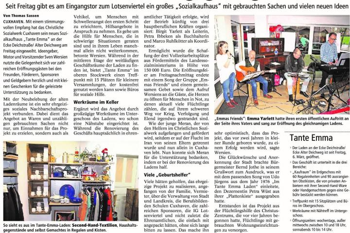 Momentan befinden wir uns mit einem Vermieter im Lotsenviertel in Vorverhandlungen, der uns bei einer Anschubfinanzierung durch die Modellförderung seine Geschäftsräume (ca.330 qm) vermieten würde. Breite Kreise der Cuxhavener Gesellschaft und Politik unterstützen uns. Unsere Netzwerkpartner und wir erfuhren, dass sich Hilfsbedürftigkeit nicht nur durch fehlende materielle Dinge auszeichnet, sondern auch durch immaterielle, wie z.B. Einsamkeit, Nicht-Gebraucht-Werden...