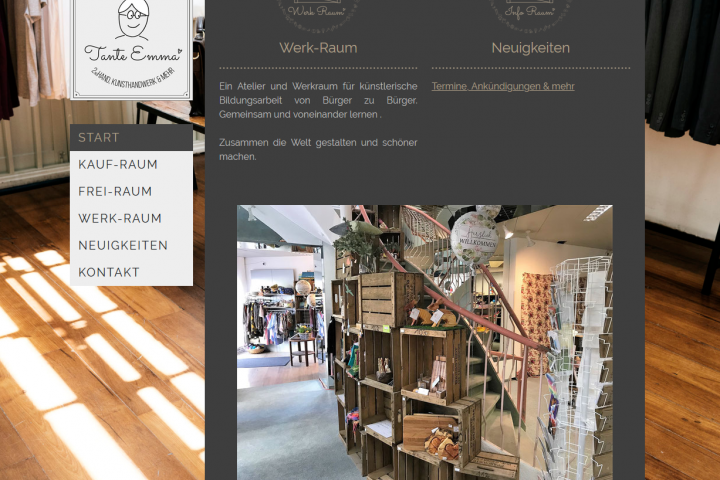 TanteEmma soll in der Innenstadt im Januar 2020 eröffnen. TE sieht in ersten Moment aus wie ein normales Ladengeschäft. In den Hinterräumen befinden sich aber auch Beratungsbüros und Versammlungsräume. Dadurch soll dies die neue Adresse des Freiwilligenzentrums werden und als "Ehrenamtsagentur" dienen.