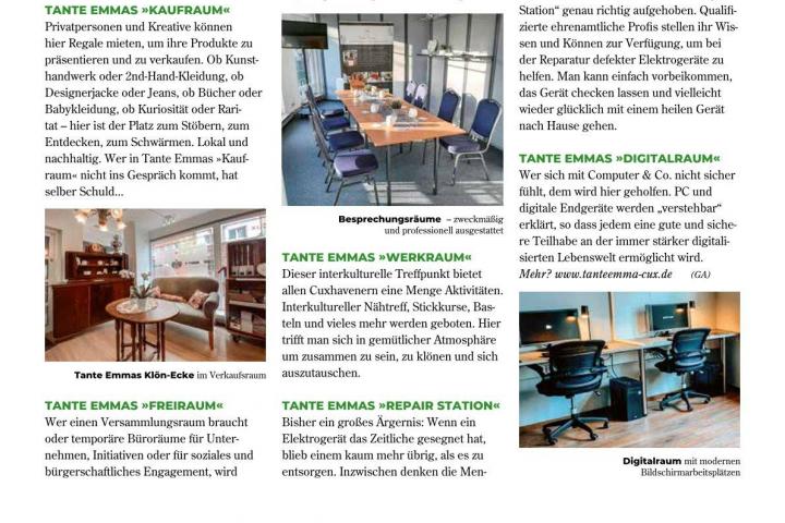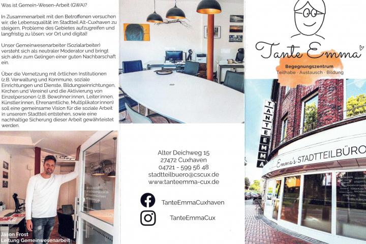 Wohlbekannt in Cux bietet unser BZ soz. Angebote sowie eine erweiterte GWA für ALLE EW. Multiple Grundpfeiler der GWA wurden errichtet und gefestigt wie z.B. HEIMAT für Begegnung, Austausch, Teilhabe u. Bildung in off. Atmosphäre (s.A.), interagierende Nachbarschaft, hohe EA-Struktur, eine Anlaufstelle mit attrakt. Außenpräsentation, ein gut vernetzter hauptamtl. GWA´ler, ein barrierefreies Stadtteilbüro, multiple Veranstaltungen sowie eine sehr hohe öff. Aufmerksamkeit. Eingebunden in die lok. Ökonomie unseres Stadtteils (s. LoI Punkt Nachhaltigkeit) und durch unseren Handelsort: „KAUF-Raum“ sowie der Vermietung von Teilflächen u. Co-Working Spaces werden knapp 60 % unserer Kosten selber getragen. Dsbzgl. erhielten wir sehr viele Anfragen anderer Projekte. Es wurde also viel erreicht, dennoch haben wir 3 Hauptziele in den nächsten 3 Jahren. Wir werden:
