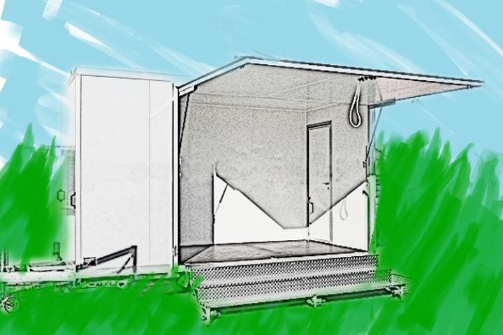 Der Anhänger, der als Büro, als Bühne und auch als als kleiner Veranstaltungsraum genutzt wird, ist mit einem Pavillon erweiterbar. Damit ist das Angebot weitestgehend wetterunabhängig.
