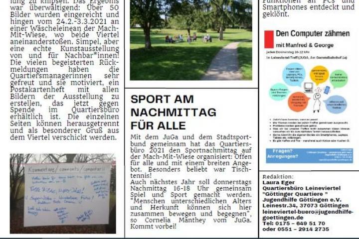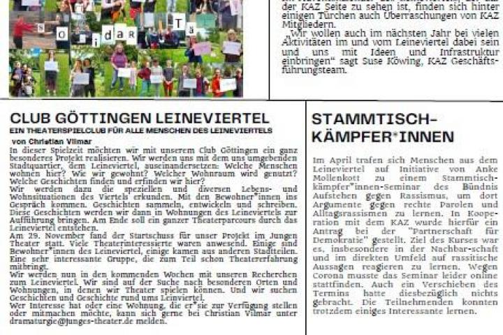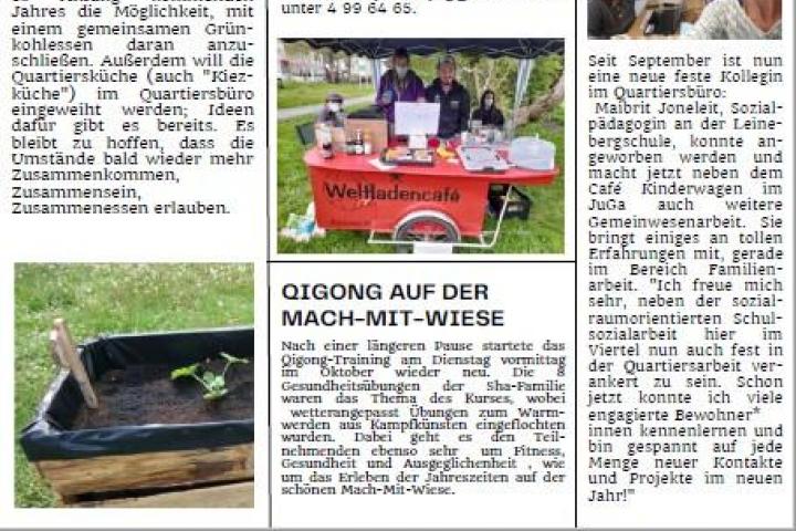 Das neu zu entwickelnde Quartier „Zietenterrassen“ befindet sich in Hanglage östl. des Stadtkerns am Göttinger Stadtrand & ist durch eine sehr heterogene Bevölkerungsstruktur geprägt. Auf einem ehm. Kasernengelände hat sich ein gemischt genutztes Quartier entwickelt. 2015 wurde eine Flüchtlingsunterkunft errichtet, die von den BewohnerInnen wenig akzeptiert wird. Es gibt latente Ängste vor Wertverlust & Übergriffen seitens der Eigenheimbesitzer. In mehrgeschossigen Wohngebäuden der Städtischen Wohnungsbau leben überwiegend einkommensschwache Mieter & Menschen mit Migrationshintergrund. Eine Spaltung der Bewohnergruppen ist zu befürchten. Erste Berichte & Beschwerden über Lärmbelästigung (insbes. durch Jugendliche), Alkohol- & Drogenkonsum im öffentlichen Raum und das Anbringen fremdenfeindl. Symbole schaden Quartiersimage & Wohnqualität. Hier gilt es über den Aufbau von GWA präventiv entgegenzuwirken. Auch das Gebiet Leineviertel ist von sozialen Problemlagen, Anonymität & Fluktuation geprägt. Eine nachbarschaftl. Organisation auf Augenhöhe und gegenseitiger solidarischer Unterstützung stößt an soziale (Alter, Geschlecht, Herkunft, Einkommen, Vorurteile) und räumliche (Hochhauskomplex Groner Landtsr. mit 432 App., Neubaugebiete in Leinenähe, verkehrliche Lage, Defizite im öffentlichen Raum) Grenzen. Diesen multiplen Problemlagen entgegenzuwirken, benötigt Kontinuität & Beständigkeit beim Aufbau der GWA. Neben den Erschwernissen bei der Standortsuche für ein Quartierszentrum, dem Pandemieausbruch im Hochhauskomplex, hat auch ein Personalwechsel im vorherigen Projektverlauf zu Rückschritten beim Aufbau nachhaltiger Strukturen der GWA geführt.