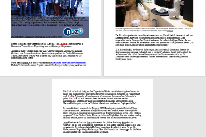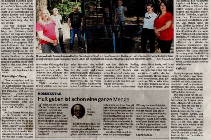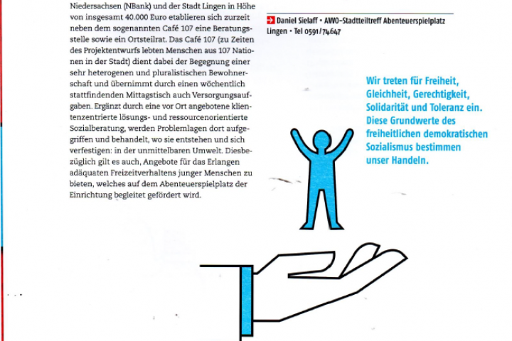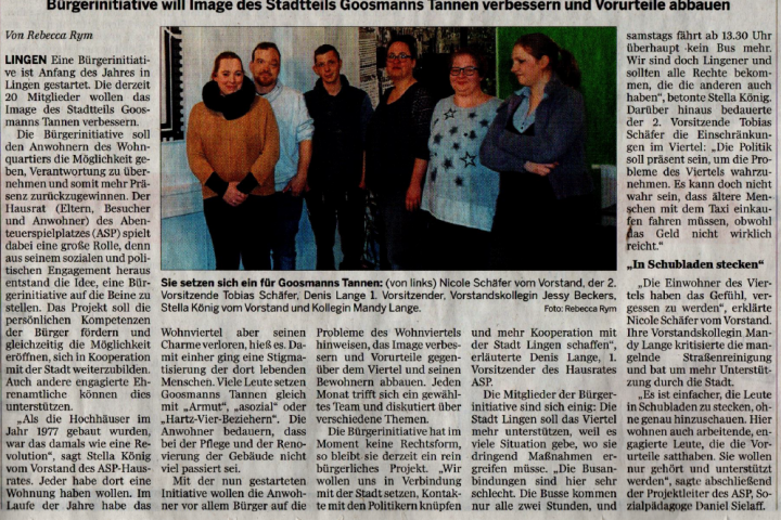 Das Quartier Goosmanns Tannen liegt am nördlichen Stadtrand der Mittelstadt Lingen mit ca. 1500 Bewohner*innen. Trotz Stadtrandlage mit hohem Grünflächenanteil ist die Qualität der Infrastruktur mangelhaft, das Stadtteilimage schlecht und benachteiligend. Die Projektinhalte und -methoden durchbrechen einen Prozess des sozialen und politischen Rückzugs und nehmen erheblichen Einfluss auf Autonomie, Selbstwert und Eigenmacht, erreichen durch Beteiligung, Begegnung und Begleitung Stärkung der Autonomie, so Verbesserung der individuellen und solidarischen Verantwortung. Der "Stadtteiltreff" wurde 1981 als Maßnahme der offenen Kinder- und Jugendarbeit in diesem Qurtier mit überdurchschnittlich hohem Anteil Sozialleistungsempfangenden und Zugewanderten errichtet und durch den Auftrag der Besucher*innen, ganzheitliche Unterstützung bei der Bewältigung der großteils prekären Lebenssituationen zu leisten, zu einem Zentrum stadtteilorientierter Sozialarbeit. 2019 schließlich konnte durch die Gewährung der städtischen und Landesfördermitteln die GWA offiziell als pädagogischer Schwerpunkt in das Konzept der Einrichtung eingebunden werden und bereits im ersten Jahr ein Begegnungscafè (Café 107), eine Beratungsstelle eingerichtet sowie eine Bürgerinitiative gegründet werden, welche durch Befragungen der Bürger*innen während einer Anwohner*innenversammlung Interessen und Bedarfe aufnehmen konnte und aus diesen bereits konkrete Zukunftsziele formuliert hat. So wird 2020/2021 Einfluss auf die Anbindung des ÖPNV genommen, welcher bisweilen das Wohnquartier nur stark begrenz anbindet, bzw. nicht berücksichtigt. Eine Vielzahl der Bewohner*innen sind aufgr. starker Mobilitätseinschränkungen von ext. Kontaktmöglichkeiten weitgehend abgeschnitten, nur wenige Familien verfügen über ein Fahrzeug. Auch die "Ver(sperr)müllung" des Quartiers bildet einen enormen Konfliktherd, welcher allgegenwärtig und schuldzuweisend wahrzunehnmen ist. Dabei ist zu betrachten, dass Straßenzüge des Quartiers weder als Abfuhrzone registriert sind, noch die Kapazitäten ausreichend sind. Durch ein Konzept in enger Zusammenarbeit (Anwohner*innen, Politik, Verwaltung) wird dieser Missstand überwunden und Bedarfe auf logistische Möglichk. abgestimmt. Zudem wird eine Stadtteil-App zur digitalen Vernetzung über Entwicklungen und Aktivitäten im Quartier aufklären und für alle Bewohner*innen im Stadtteil und darüber hinaus Kommunikationsplattform bilden und nachhaltig einen ganzheitlichen Zugang begünstigen.