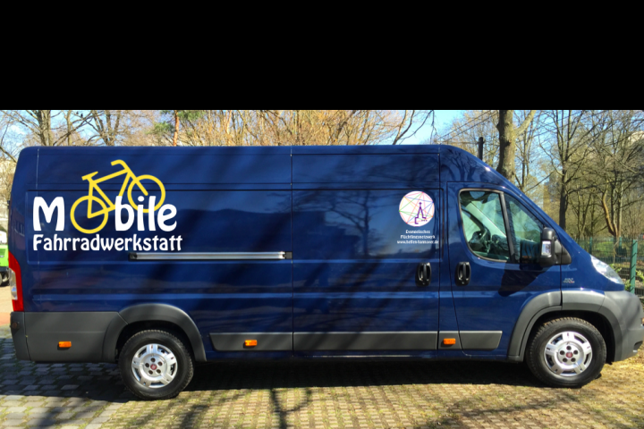 Das Werkstattmobil der „Mobilen Fahrradwerkstatt“ hat seine Garage verlassen. Diesmal ist das Ziel eine Flüchtlingsunterkunft in Hannover. Es ist mit zwei MitarbeiterInnen besetzt. Der technische Mitarbeiter hat im Vorfeld gespendete Fahrräder abgeholt und aufgeladen. Werkzeugkästen und Reparaturmaterial sind ergänzt worden. Die Fachkraft mit den gemeinwesenorientierten Aufgaben, ein Sozialarbeiter, hat Flyer und Informationsbroschüren dabei. Sie verfügt über Kontakte zu Integrationslotsen, zu den quartiernahen Unterstützerkreisen, zu Beratungsinstitutionen und zum kommunalen Quartiersmanagement. Am Einsatzort, auf dem Platz vor der Unterkunft angekommen haben sich erste Flüchtlinge eingefunden, möchten ein gespendetes Fahrrad entgegennehmen oder ihr eigenes reparieren. Auch ehrenamtliche „Fahrradschrauber“ sind eingetroffen. MitarbeiterInnen des Betreibers der Unterkunft sagen „Hallo“ und nennen Bewohner, die dringend ein Fahrrad benötigen.
