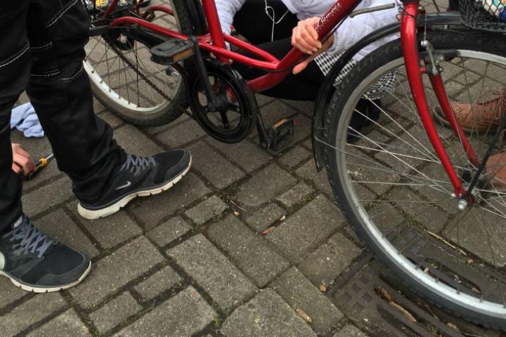 Gespendete oder defekte Fahrräder werden gemeinsam mit dem (zukünftigen ) Besitzer instandgesetzt.