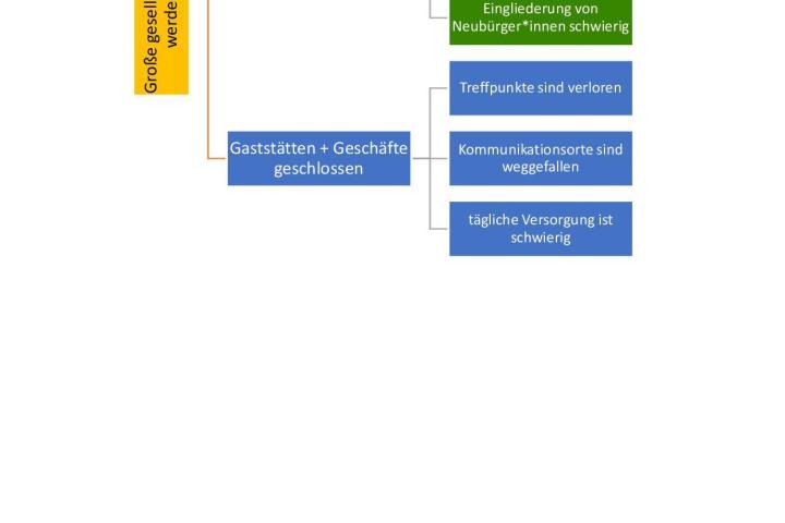 •Verlust der „Idee des Dorfes“: Zugezogenen fehlt innere Verbindung zum Dorf und damit Identität. Junge Menschen werden nicht erreicht.