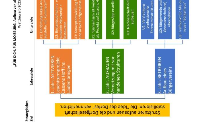 Moisburg will ein Dorf sein, in dem Menschen glücklich aufwachsen und gemeinsam alt werden. Eine professionelle Unterstützung der ehrenamtlich geführten Gemeinde zum (Wieder)Aufbau und Erhalt verlässlicher Nachbarschaften ist dafür notwendig.